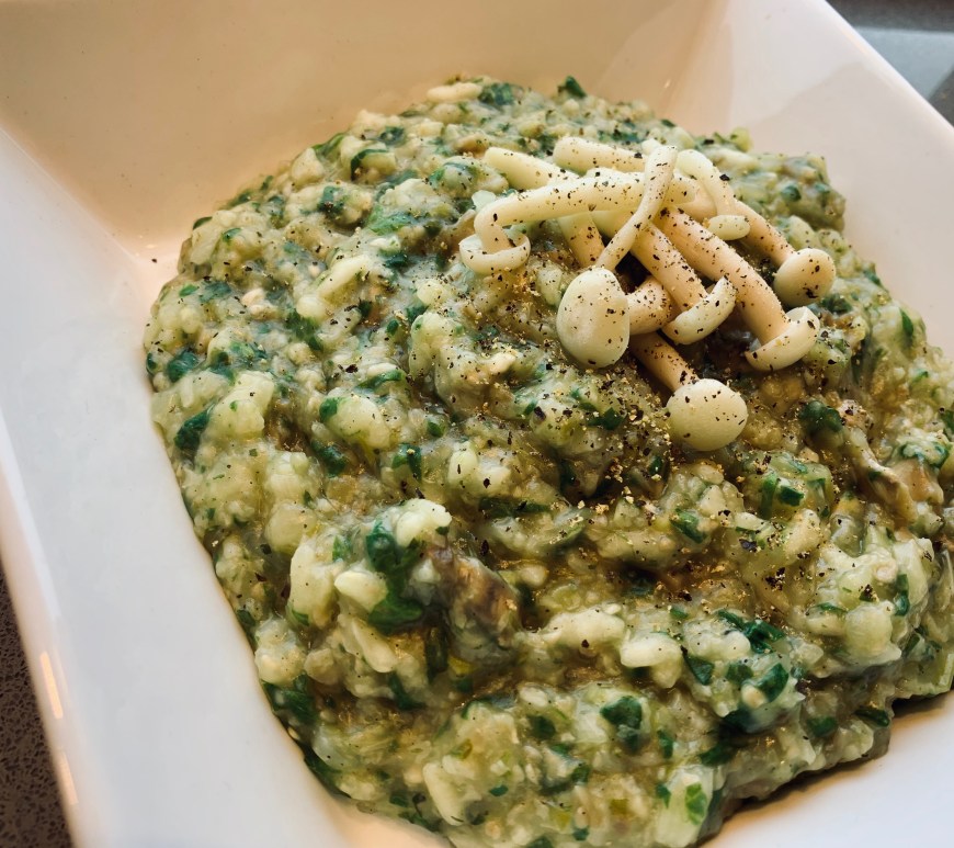 An oil free, slow cooked super creamy mushroom and spinach white wine risotto… delicious and nutritious! Ingredients: This following is for two. 100g of risotto rice 200g mushrooms (sliced – any type of your choice) A few shimeji mushrooms for garnish (optional) 1 cup of baby spinach (finely chopped) 1 small white onion (very finely chopped) 1 clove of garlic (very finely chopped) 50ml of … Continue reading Mushroom and spinach white wine Risotto (slow cooker)