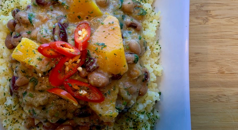 A delicious recipe that can be made in under 20 mins from scratch. This curry is amazing with rice (or my turmeric rice!) or wholemeal naan bread. Ingredients: This following is for 3-4 people 1 small sized butternut squash (peeled, seeds removed and cut into 1 inch cubes) 1 tin of cannellini beans in water (drained and rinsed) 2 onions (peeled, roughly chopped) 2 cloves … Continue reading Indian cannellini bean and butternut squash curry
